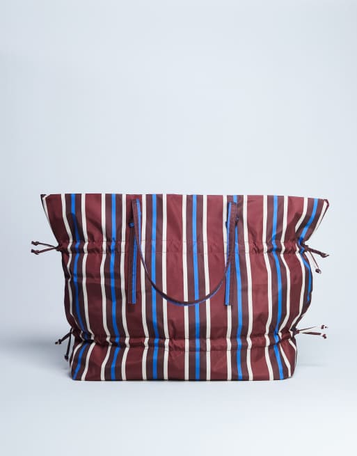 Topshop - Tino - Borsa shopping in nylon bordeaux a righe con arricciature