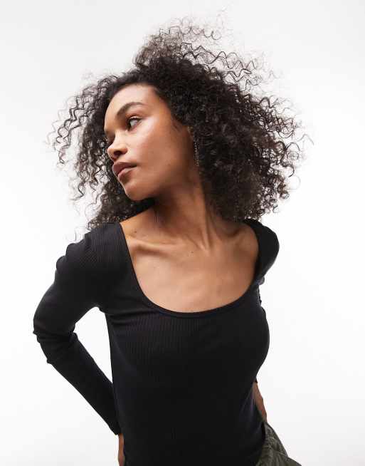 Topshop - Top a maniche lunghe con scollo quadrato nero