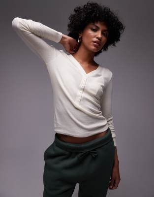 Topshop - Top a maniche lunghe premium écru testurizzato a nido d'ape