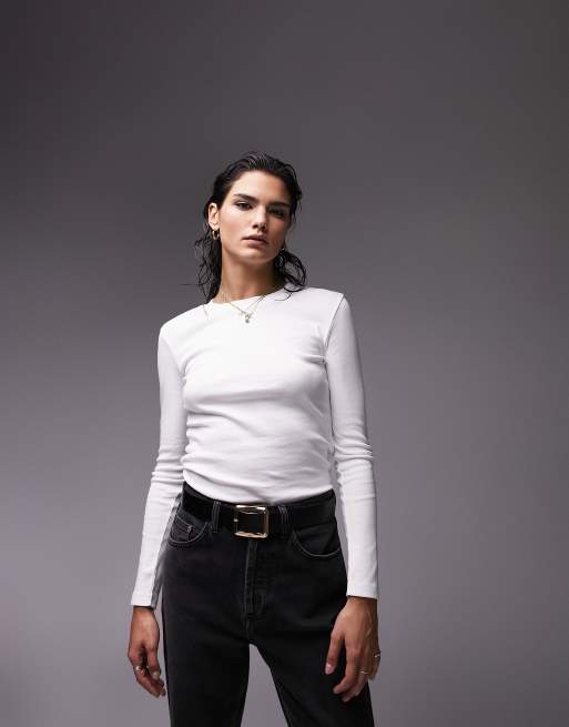 Topshop - Top a maniche lunghe slim bianco