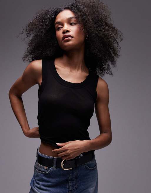 Topshop - Top senza maniche premium trasparente nero a coste