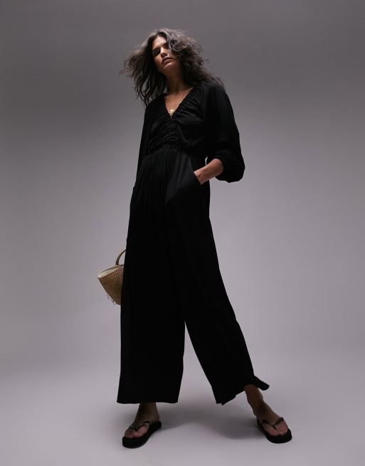 Topshop - Tuta jumpsuit nera in jersey a maniche lunghe