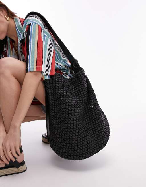 Topshop - Tyler - Borsa a secchiello in paglia nera