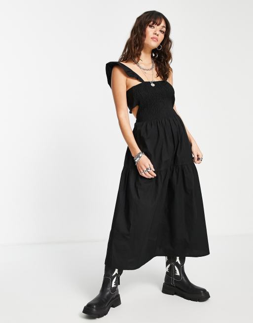 Topshop - Vestito arricciato in popeline di cotone nero - BLACK