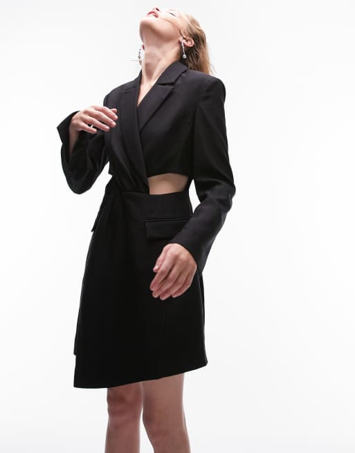 Topshop - Vestito blazer sartoriale nero con incrocio e cut-out