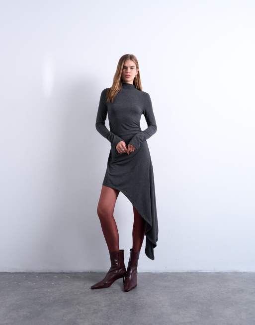 Topshop - Vestito corto accollato grigio antracite con fondo asimmetrico