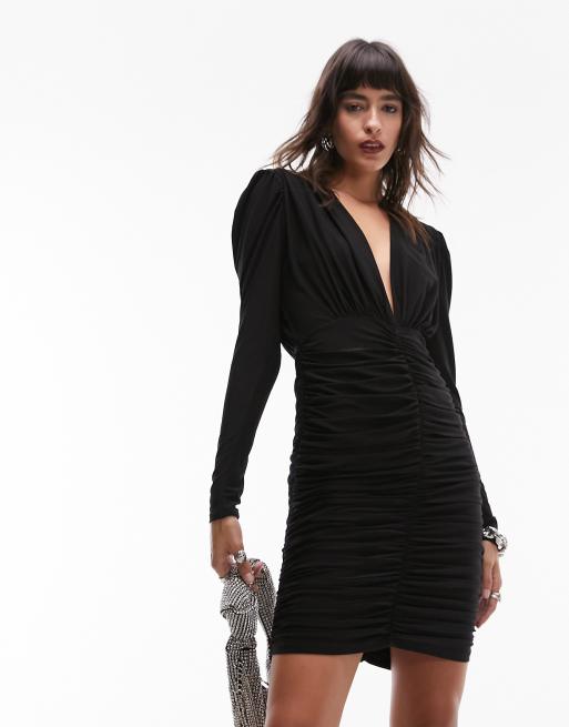 Topshop - Vestito corto nero a maniche lunghe drappeggiato