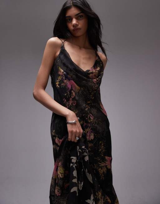 Topshop - Vestito lungo sottoveste a doppio strato con fondo godet a fiori