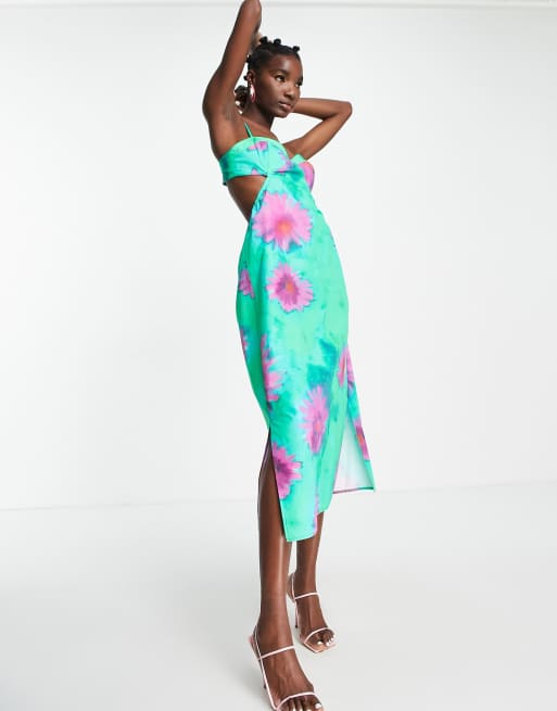 Topshop - Vestito midi con parte superiore a reggiseno e stampa astratta di margherite