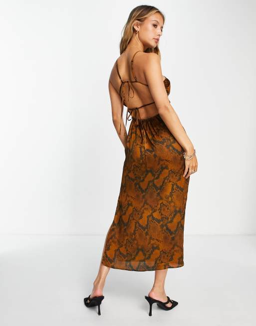 Topshop - Vestito midi con spalline sottili marrone chiaro pitonato