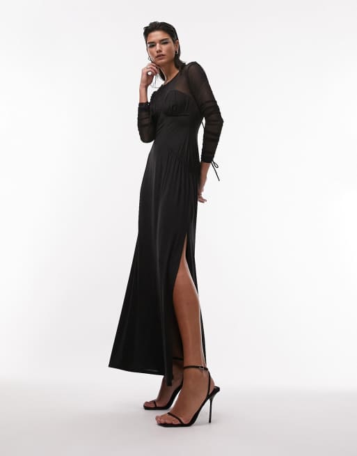 Topshop - Vestito midi nero con bustino a coste - In edizione limitata