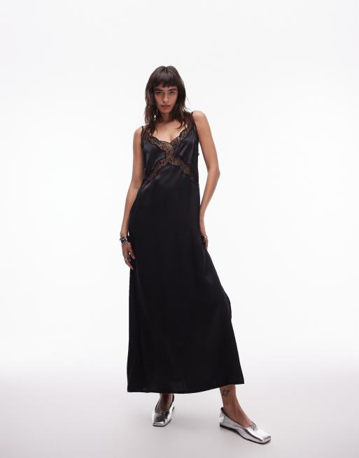 Topshop - Vestito midi nero con inserto in pizzo