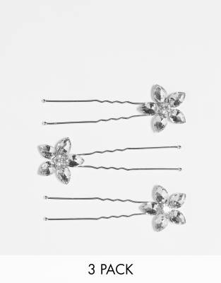True Decadence - Confezione da 3 fermagli per capelli da cerimonia color argento con cristalli