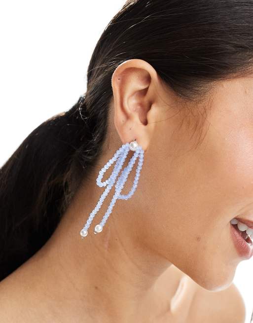 True Decadence - Orecchini blu pallido a forma di fiocco con perline