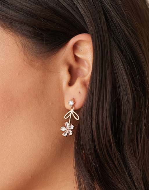 True Decadence - Orecchini pendenti dorati con fiori e cristalli
