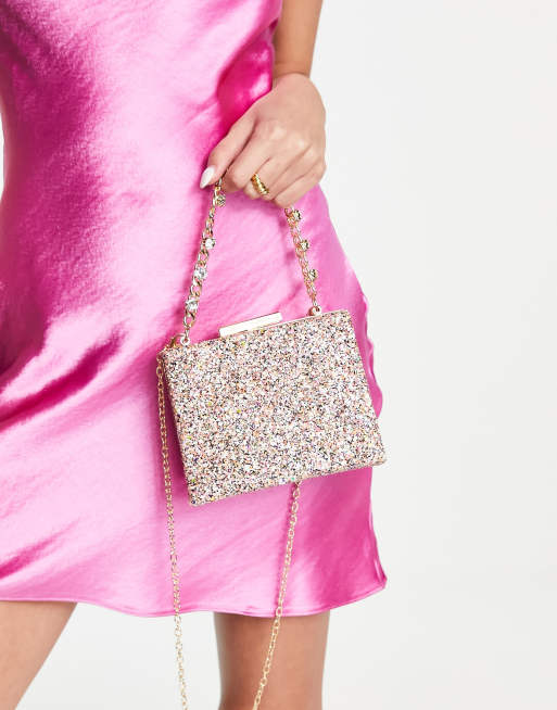 True Decadence - Pochette rosa glitterata con manico a catenina spessa