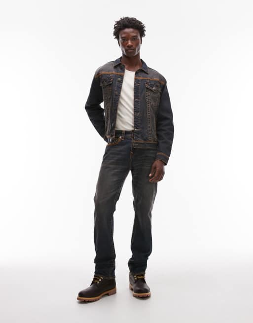 True Religion - Giacca trucker di jeans lavaggio indaco scuro con cuciture piatte in coordinato