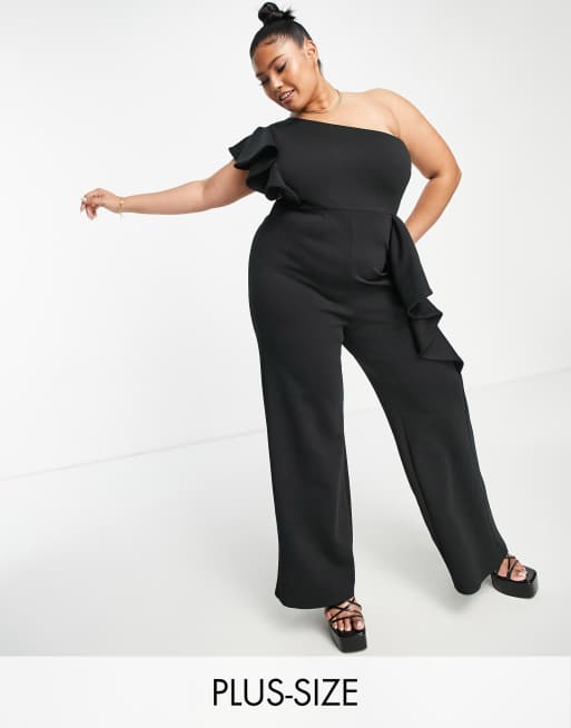 True Violet Plus - Tuta jumpsuit nera monospalla a fondo ampio
