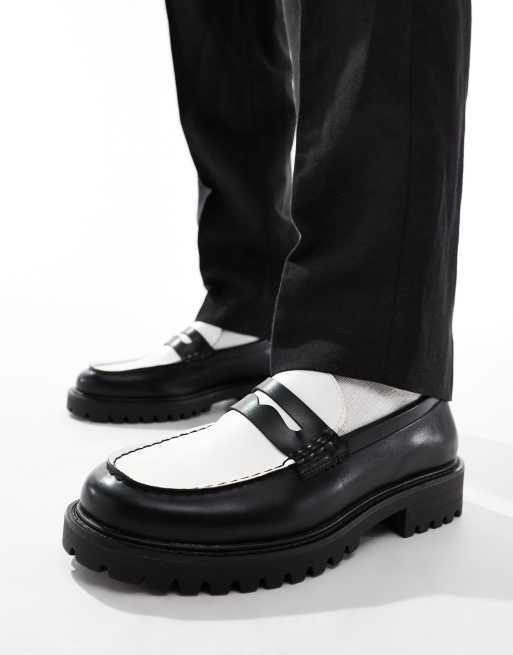 Truffle Collection - Mocassini college neri e bianchi con suola spessa