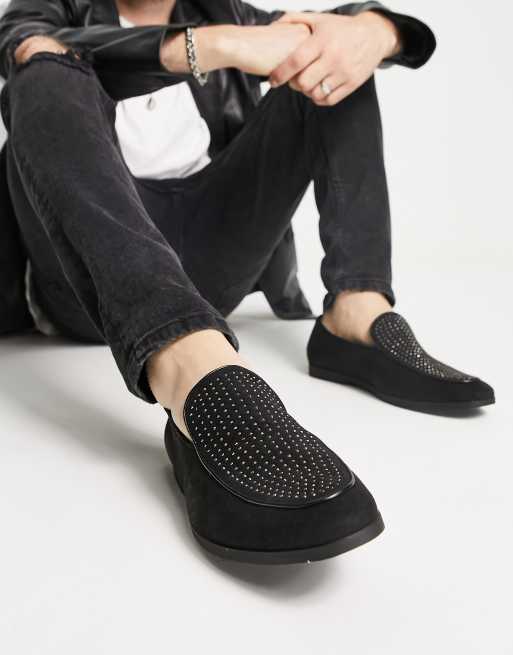Truffle Collection - Pantofole stile mocassini in velluto nero con borchie
