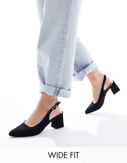 Truffle Collection - Scarpe con tacco largo e cinturino sul retro a pianta larga nere