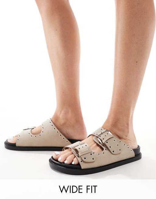Truffle Collection Wide Fit - Sandali tortora a pianta larga con fascette doppie e borchie