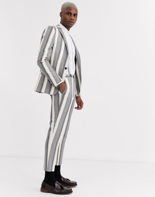 Twisted Tailor - Abito cropped stretto in fondo grigio pietra a righe larghe