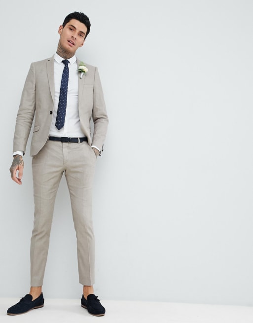 Twisted Tailor - Abito super skinny in lino grigio pietra