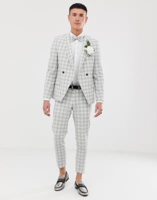 Twisted Tailor - Abito super skinny in seersucker grigio a quadri