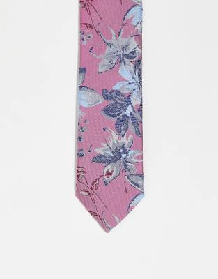Twisted Tailor - Cravatta rosa con motivo floreale grande blu