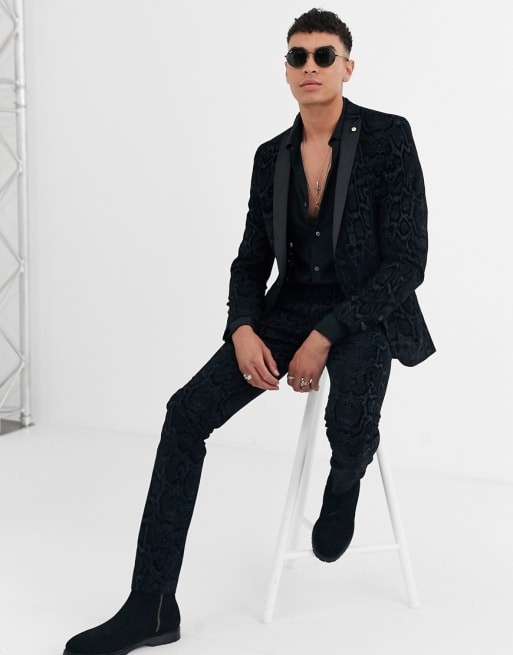 Twisted Tailor Tall - Abito super skinny grigio con floccatura pitonata