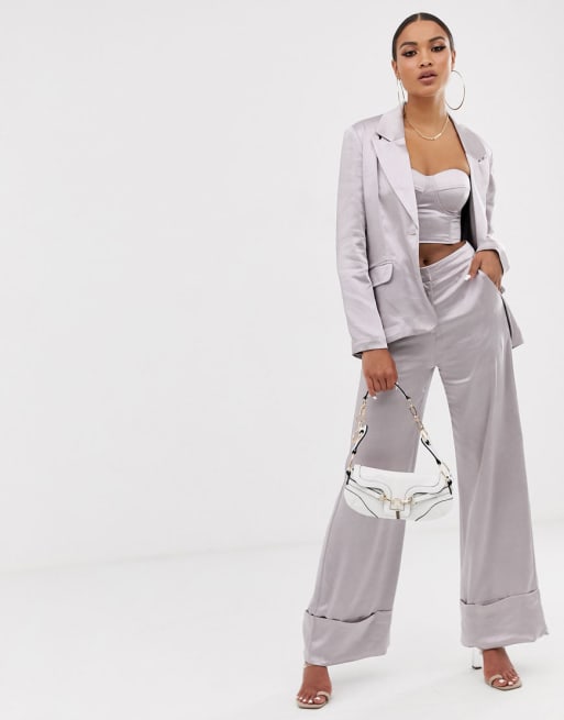 Unique21 - Blazer in raso e pantaloni vita alta ampi in coordinato