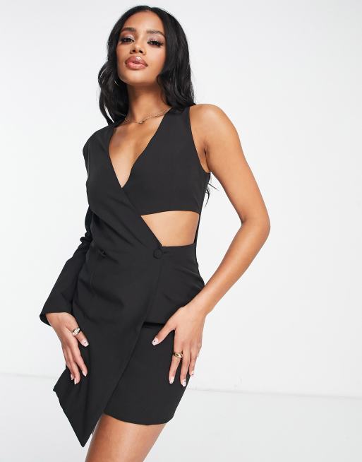 Unique21 - Vestito blazer nero monospalla con cut-out