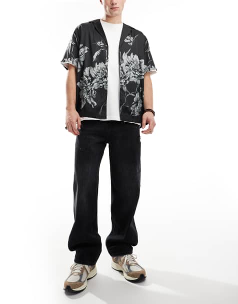 ASOS DESIGN - Jeans ampi lavaggio nero con abrasioni