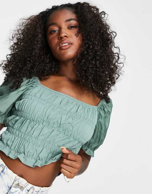 Urban Revivo - Top arricciato verde polvere