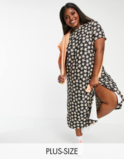 Urban Threads Plus - Vestito T-shirt lungo con stampa di margherite