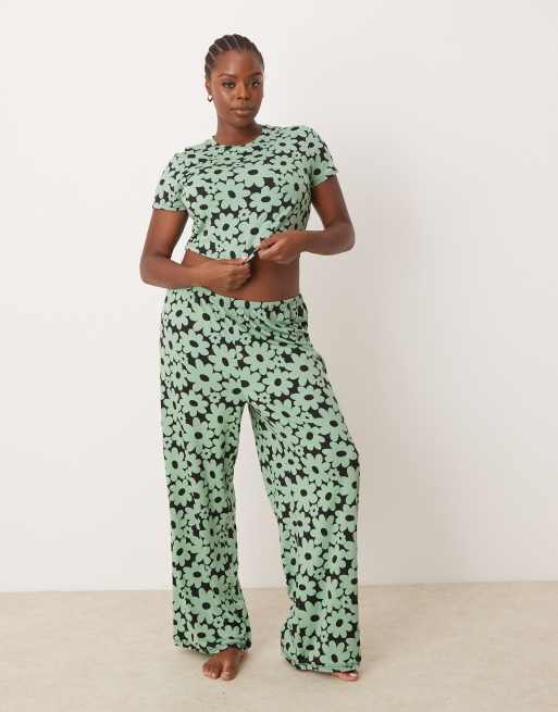 Urban Threads Curve - Pigiama in poliestere con stampa a fiori rétro composto da T-shirt e pantaloni