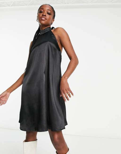 Urban Threads - Vestito corto in raso nero accollato