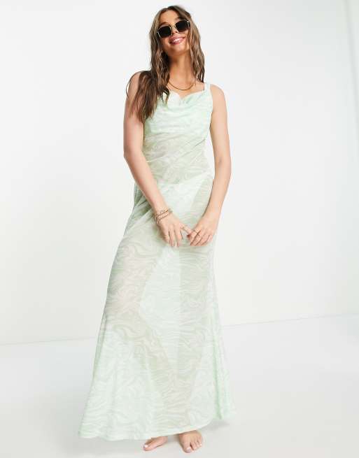 Urban Threads - Vestito lungo da mare color menta con scollo ad anello