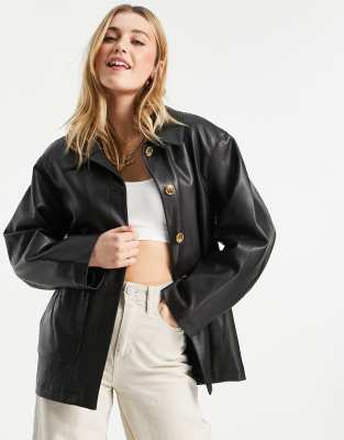 Urbancode - Giacca in pelle sintetica con bottoni