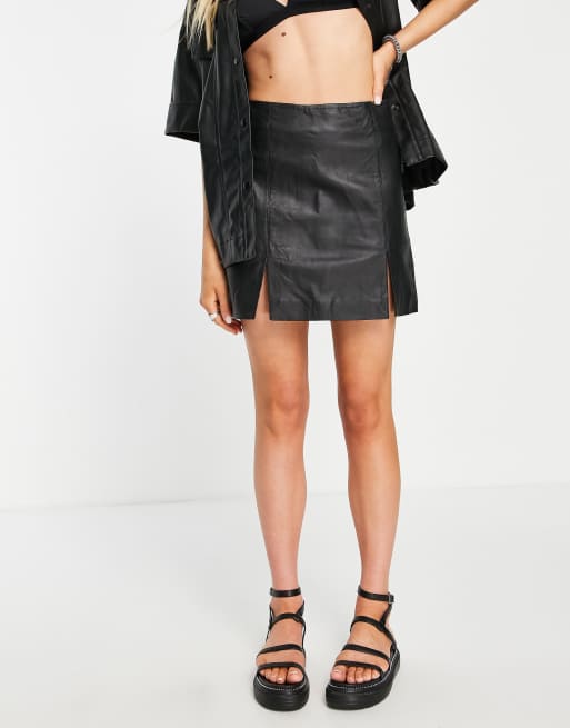 Urbancode - Minigonna in vera pelle nera con spacchi