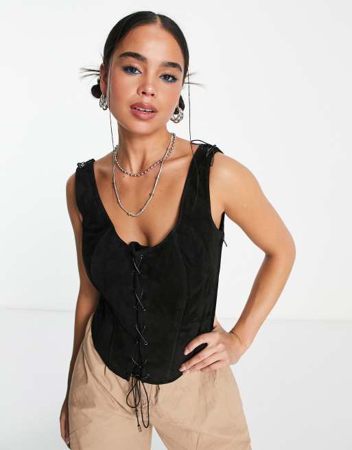 Urbancode - Top nero in vero camoscio con lacci