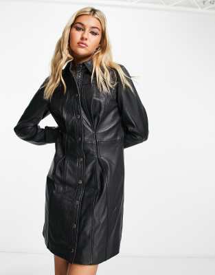 Urbancode - Vestito in vera pelle nero stile corsetto