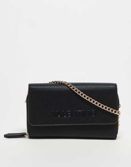 Valentino - Borsa nera con tracolla a catenina e logo in rilievo con scatola regalo