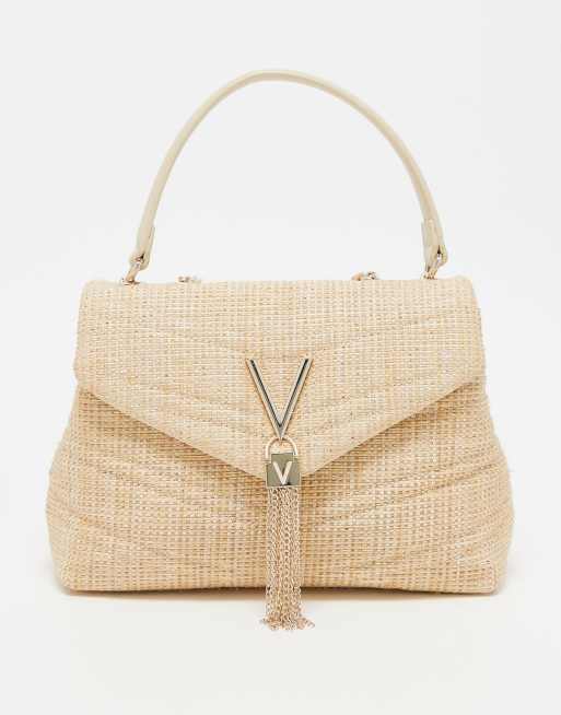 Valentino - Privilege - Borsa da spalla in paglia glitterata neutra con tracolla