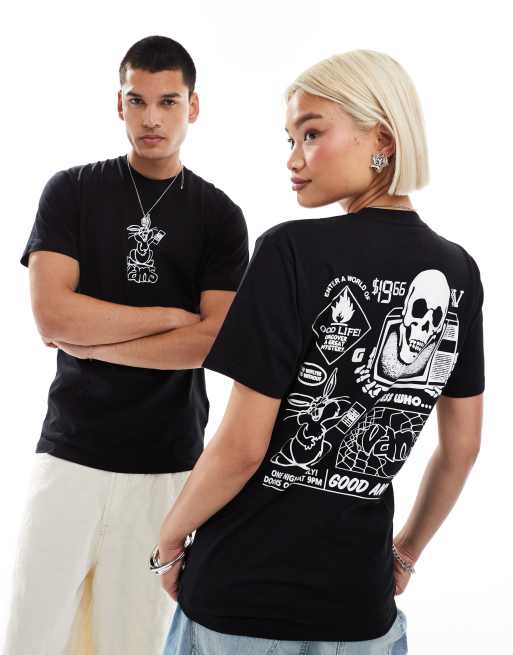 Vans - Crazy Eddy - T-shirt nera con stampa di teschio sul retro