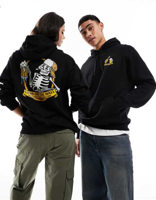 Vans - Felpa con cappuccio nera con stampa di scheletro con birra