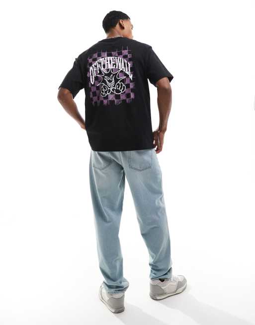 Vans - Gfx - T-shirt nera con logo e stampa a scacchi vestibilità ampia