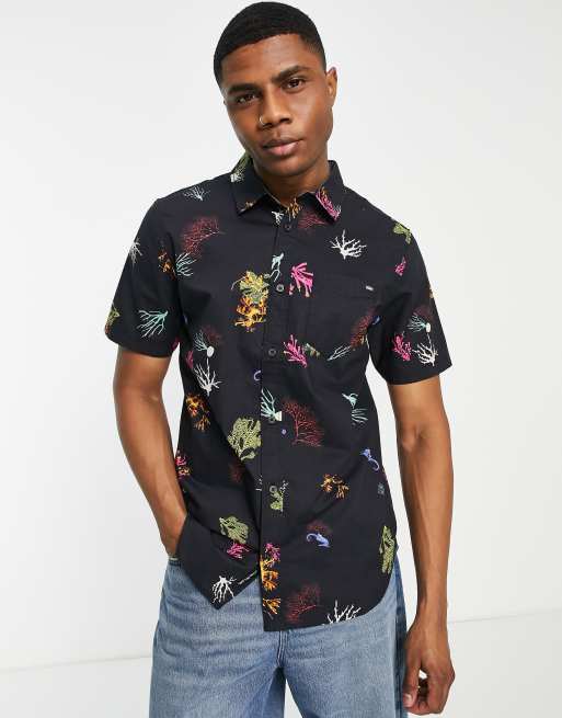 Vans - Reality Coral - Camicia a maniche corte nera stampata