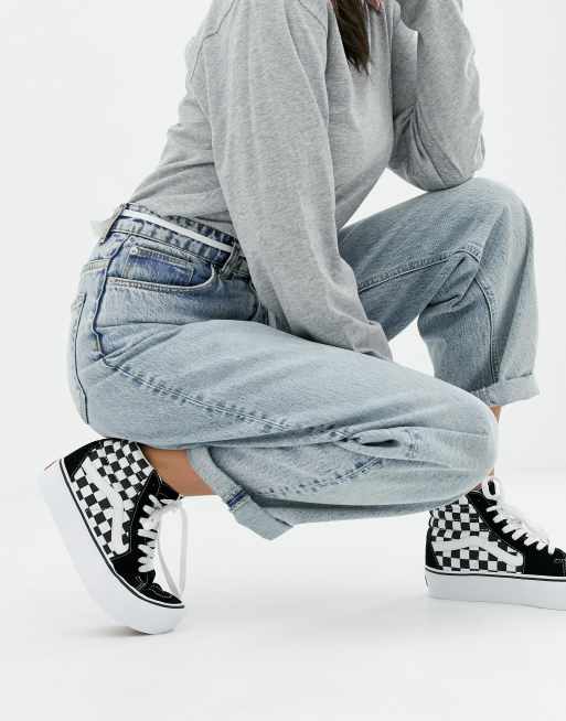 Vans - Sk8-Hi - Sneakers con plateau nere a scacchi